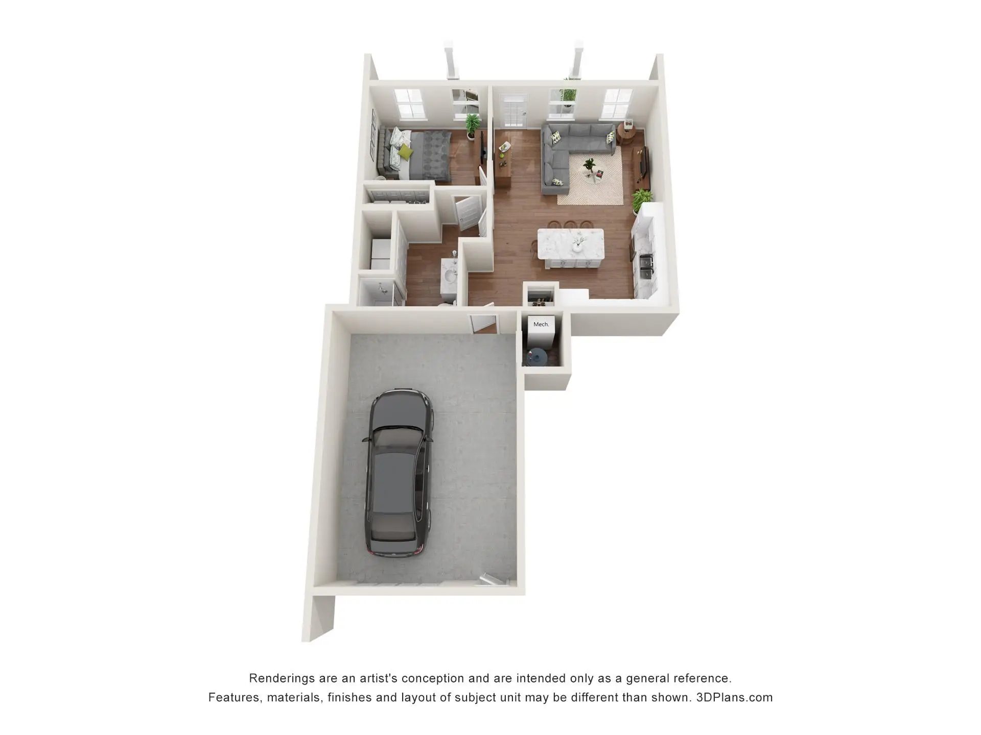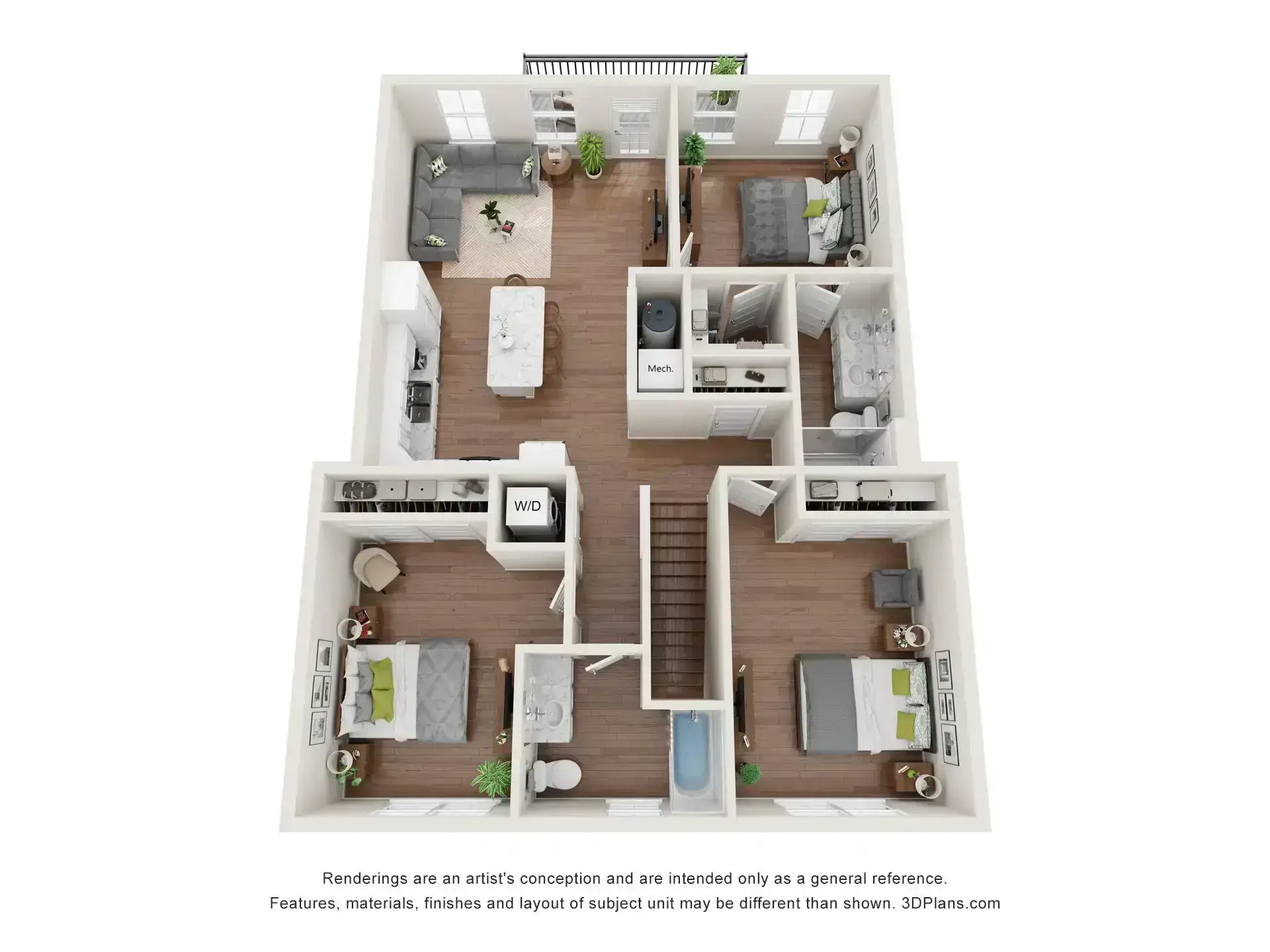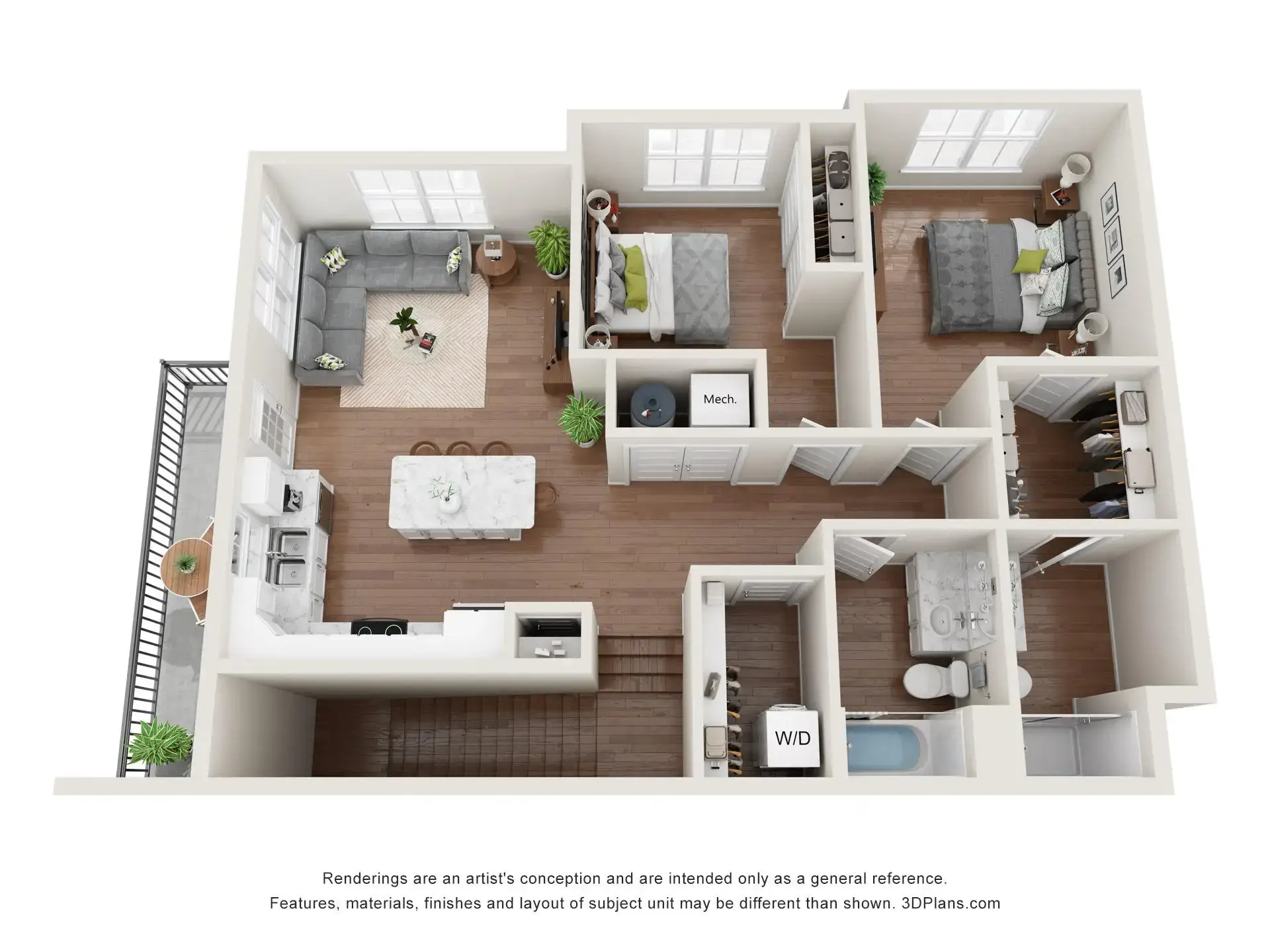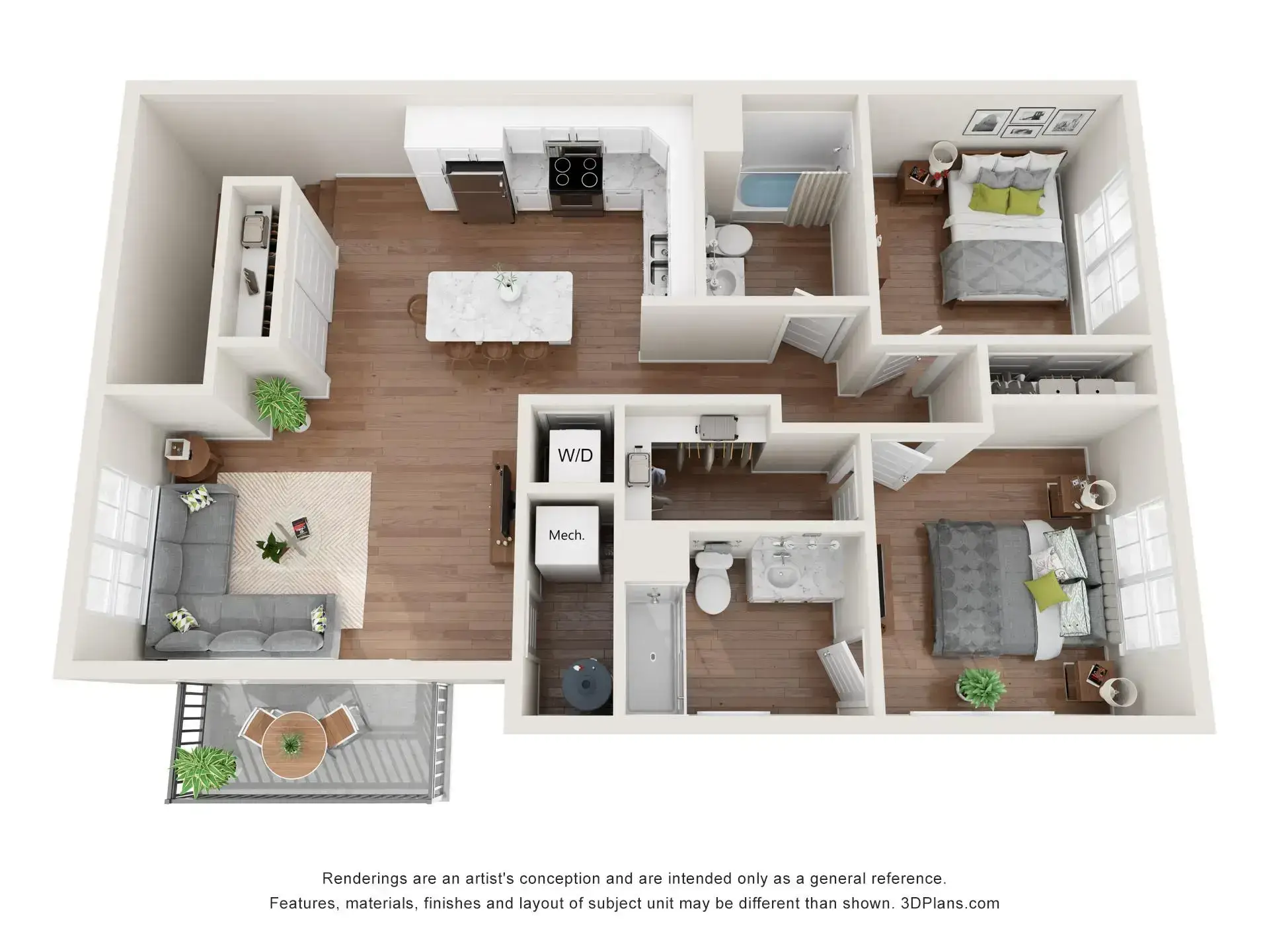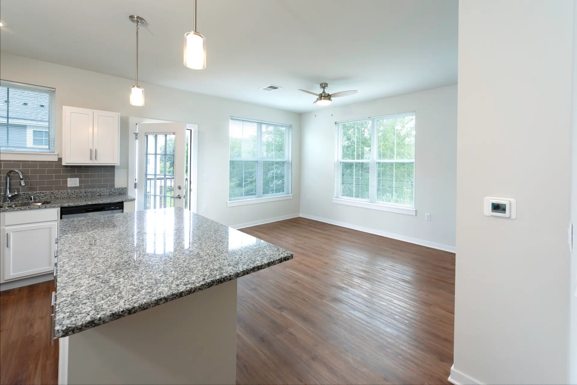 Summer Ridge offers luxury one-, two-, and three-bedroom townhouse-style apartments with private entrances, attached garages, and balconies or patios. Each unit features a primary bedroom with a walk-in closet, individually controlled heating and air conditioning, in-unit laundry, and top-of-the-line finishings.
